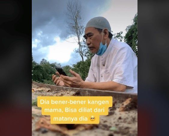 Dalam tayangan itu, terlihat raut wajah sang ayah tampak memendam kerinduan untuk istrinya.