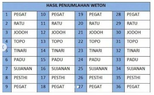 Tabel hasil perhitungan neptu (borobudurnews.com)