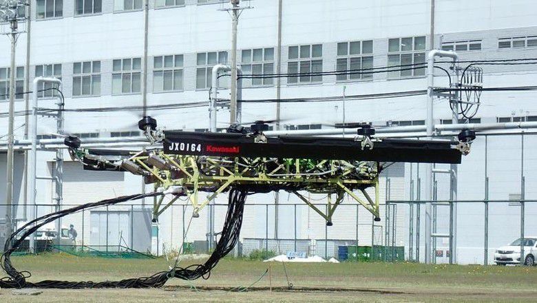Seperti hasil pengembangan dari Produsen asal Jepang, Kawasaki dilaporkan tengah mengembangkan prototipe drone terbarunya yang dikenal dengan 'truk terbang'. Edan gak tuh gengs?