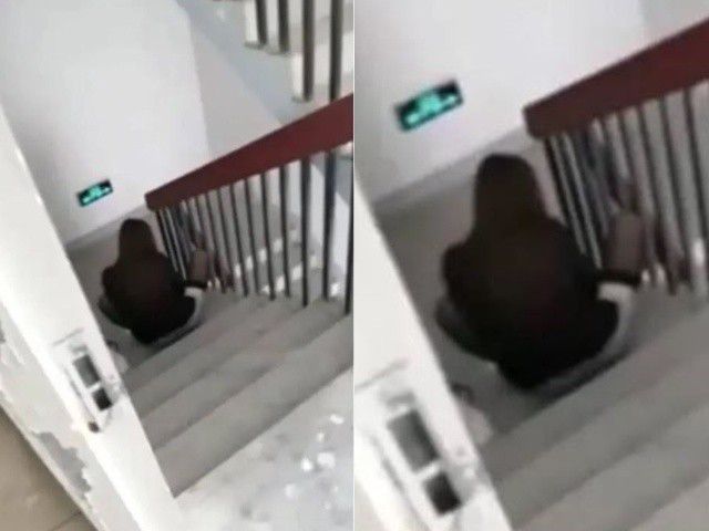 Untuk membuktikan kebenaran ceritanya, Huang diam-diam memotret tetangganya dari belakang sehingga hanya menunjukkan bagian punggungnya. Dalam foto tersebut, tampak seorang wanita dengan pakaian hitam, bawahan putih serta stocking hitam sedang duduk di tangga dengan posisi mencurigakan yakni melebarkan dua kakinya.