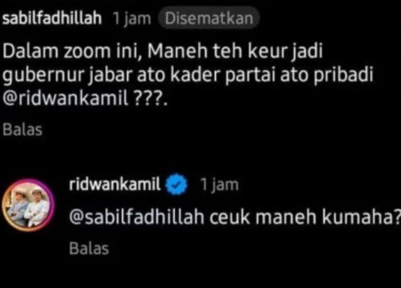 Komentar Sabil di unggahan Ridwan Kamil (viva.co.id)