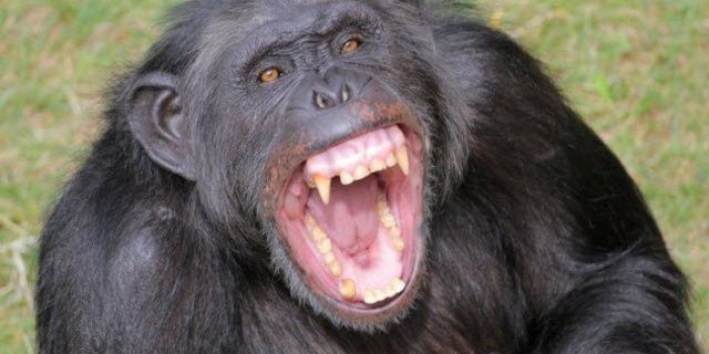 Gigi taring simpanse yang tampak ketika dia marah (merdeka.com)
