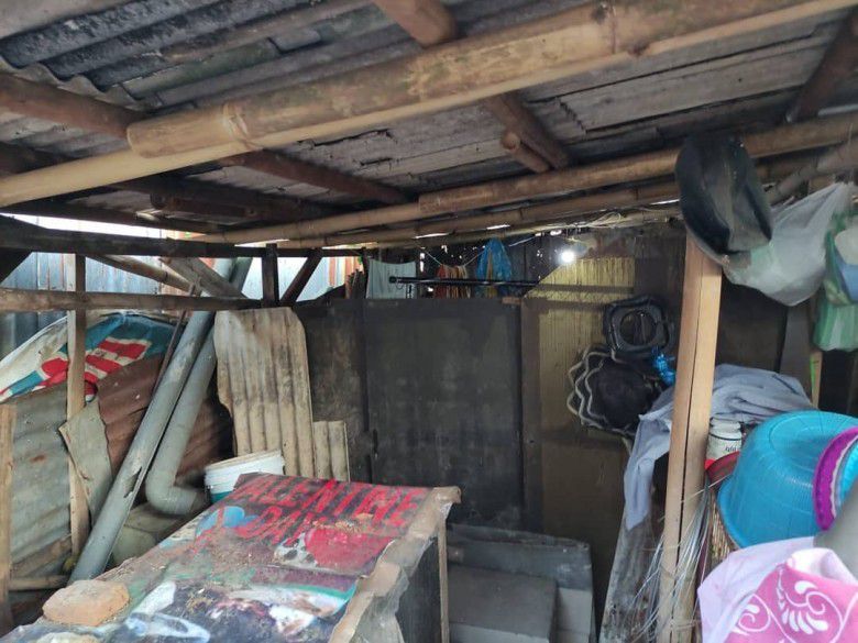Pada beberapa foto yang dibagikan ACT, terlihat rumah Pak Gani yang hanya bertembokkan papan, beratapkan seng dan berpondasikan bambu.