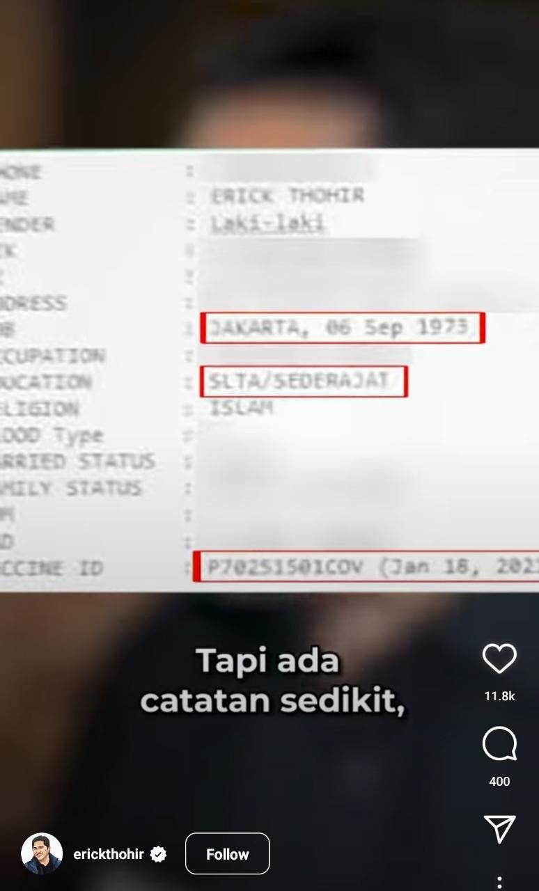 Erick Thohir Ajak Hacker Lokal Lindungi Data Negara, Usai “Rahasianya” Diobok-obok Bjorka (Instagram/@erickthohir)