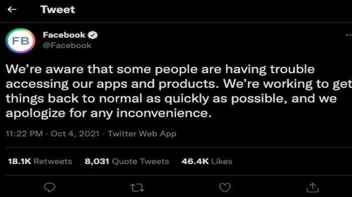 Bahkan hal ini menjadi trending dengan 94 ribu cuitan di Twitter mengenai keluhan tentang downnya WhatsApp, Instagram dan Facebook. Seperti sebelumnya di tahun 2019, pihak Facebook tetap gamblang dalam menjelaskan penyebab downnya situs mereka. Parahnya lagi, akibat down kemarin, saham Facebook juga ikut turun banyak.