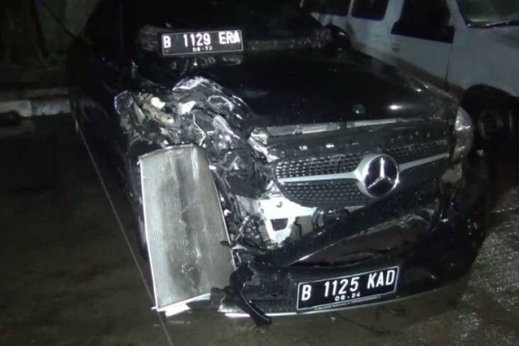 Kondisi Mobil Mercy yang Ringsek di jalan tol JORR (Sindonews)