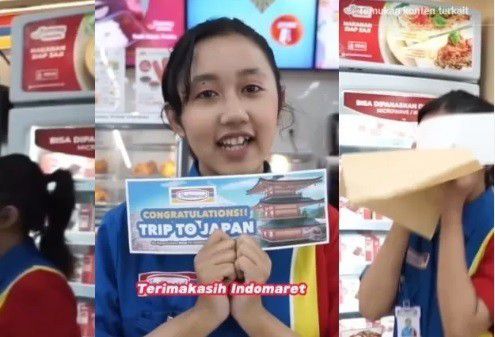 Vania pun langsung terkejut karena mendapat apresiasi dari manajemen berupa tiket perjalanan menuju Jepang. Vania langsung bahagia dan lompat-lompat menandakan kegembiraannya. Mungkin saja alasan Vania belum pernah pergi ke Jepang karena gaji kasir Indomaret yang diterimanya mungkin belum cukup untuk membawanya jalan-jalan ke Jepang.
