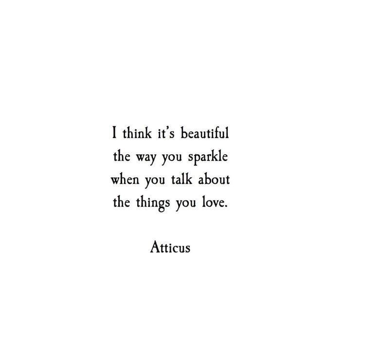 "I think it's beautiful the way you sparkle when you talk about the things you love."