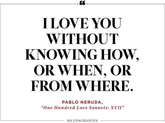 Artinya: Aku mencintaimu tanpa menyadari bagaimana, atau kapan, atau dari mana.