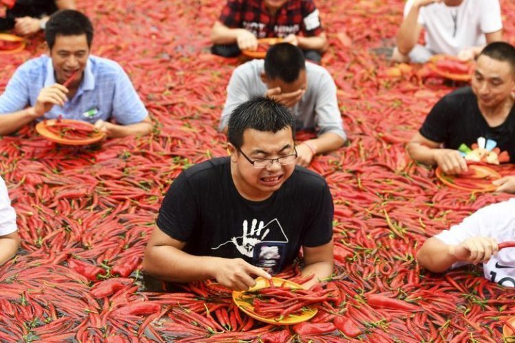 Aneh-aneh yak gengs rupanya negara China, dimana negara ini mengadakan kompetisi makan cabe di kolam panas. Kalo cuman kompetisi makan cabe mah masih banyak, yang jadi nggak lazim tuh tempatnya, yakni di kolam panas.