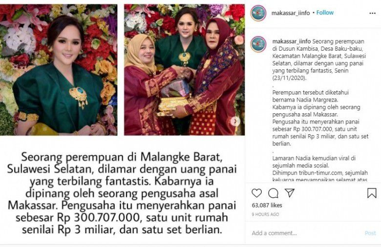 "Semangat kau kerja demi uang panai, anak muda," imbuh warganet lain.