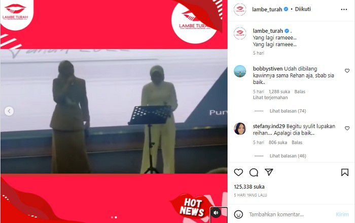 “Pergilah kasih, kejarlah selingkuhanmu.. aku sudah punya yang baru.. lebih enak dari kamu..aku rela berpisah demi untuk dirimu semoga tercapai segala keinginanmu,” nyanyi Ambu Anne ditemani seorang wanita yang dikutip dari Instagram @lambe_turah.