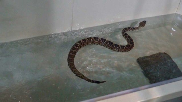 Biasanya mereka akan bertahan empat sampai lima menit sebelum akhirnya menunjukan tanda-tanda kelelahan. Setelah lelah reptil ini akan dikeluarkan dari dalam bak. Beberapa jenis ular seperti jenis derik dan diamondback timur biasanya lebih seneng bermain air dalam waktu yang agak lama.