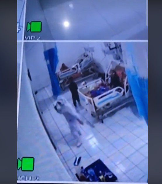 Sosok itu terlihat berwarna hitam dan sedang berdiri di sekitar tempat tidur pasien. Ketika seorang perawat masuk ke ruangan, ia langsung ketakutan dan keluar kamar.