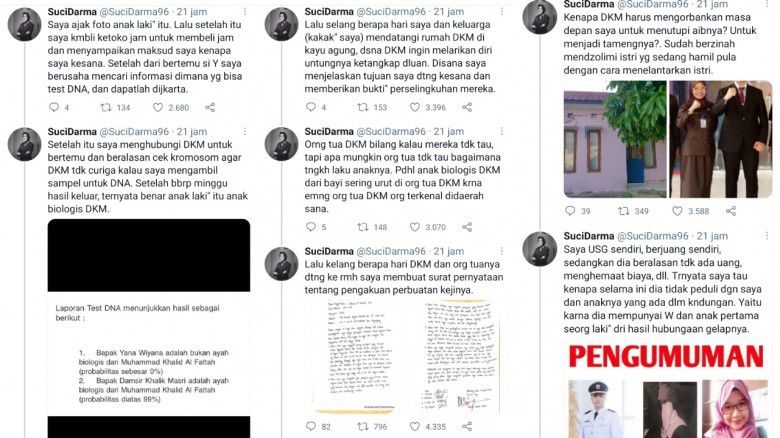 “Kenapa DKM harus mengorbankan masa depan saya untuk menutupi aibnya? Untuk menjadi tamengnya?. Sudah berzinah mendzolimi istri yg sedang hamil pula dengan cara menelantarkan istri,” ungkap Suci.