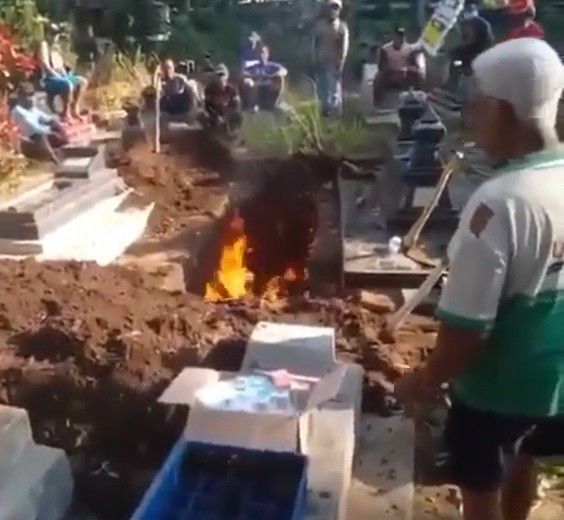 Sebuah video bikin geger media sosial beberapa waktu lalu. Sebuah makam mengeluarkan kobaran api jelang diisi oleh jenazah yang akan dikuburkan. Banyak warganet menduga kejadian itu berkaitan dengan jenazah yang akan dimakamkan di makam tersebut.