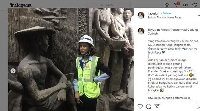 “Ada kejutan di project ini dengan ditemukan sebuah patung peninggalan masa pemerintahan Presiden Soekarno setinggi 3x12 m yang selama ini disembunyikan di dalam struktur bangunan, dan baru diketahui keberadaannya ketika bangunan dibongkar,” ujar wanita tersebut dalam caption unggahannya.