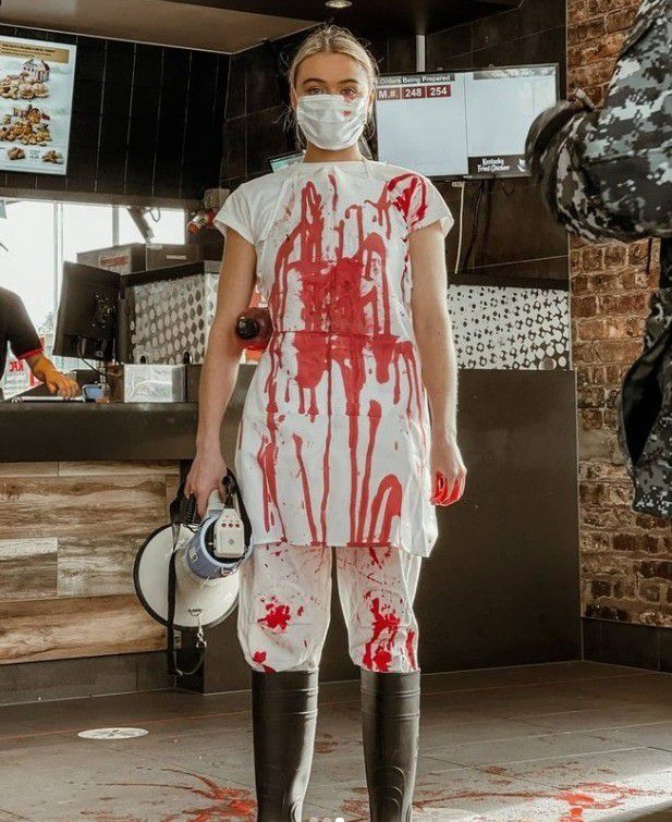 Tash Peterson bersama teman-temannya sengaja memprotes KFC dan para pengunjungnya, lalu menyebut mereka adalah penyiksa binatang. Mereka juga tak segan menyiramkan cat merah ke lantai restoran tersebut sehingga tampak seperti tragedi pembantaian.