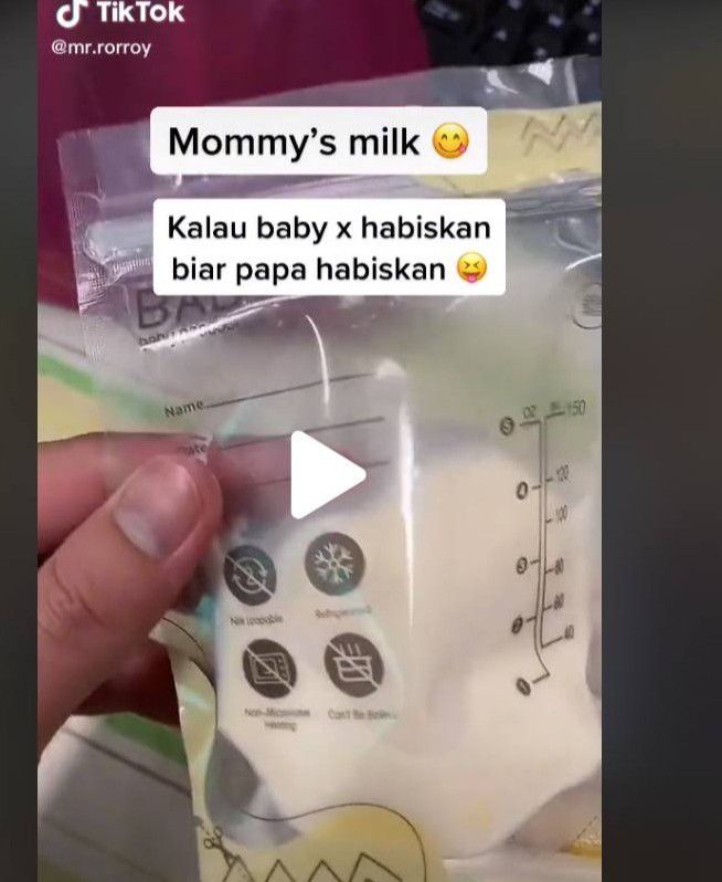 Video yang diunggah akun TikTok @mr.rorroy memperlihatkan sebuah wadah berisikan buah-buahan yang biasa ia bawa untuk bekal. Yang mengejutkan lagi adalah saat ia menunjukkan sebuah kantong ASI milik istrinya.