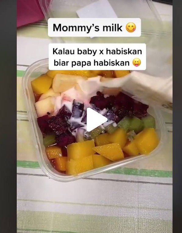 Viral seorang pria menggunakan ASI istrinya untuk dikonsumsi dengan buah (tiktok.com)