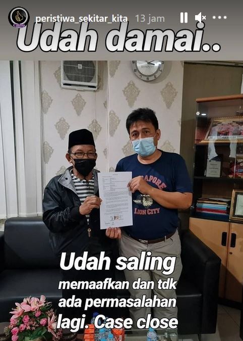 Setelah melalui berbagai proses diskusi, akhirnya perdebatan tentang masker ini berakhir dengan damai. Tak lama kemudian, beredar foto kedua belah pihak berdiri bersampingan dan menunjukkan sebuah surat dengan materai.