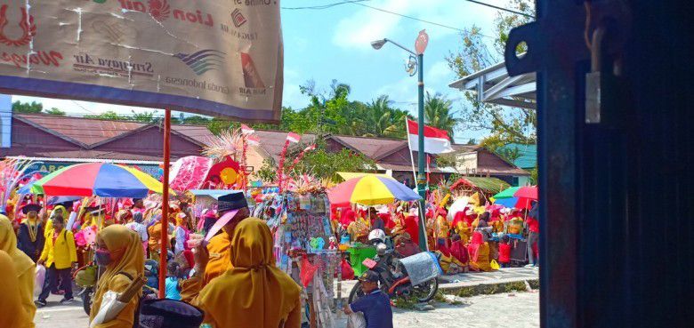 Atribut selengkap itu punya harapan agar kuliner dan bangunan bersejarah di Kabupaten Kobar bisa dikenali oleh generasi muda. Tapi yang paling gokil sih tetep kesaktian orang yang duduk di atas pelepah kelapa itu sih ya.