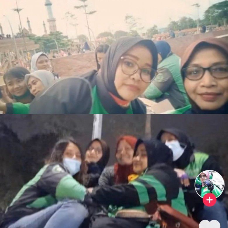 # Ia tengah mengenakan seragam ojol bewarna hijau dengan perlengkapan berkendara. Bersama dengan supir ojol wanita lainnya, ibu Galuh tampak terlihat berbaur dan kompak. Ia bercerita kalo kehidupannya berubah sejak tahun 2017.