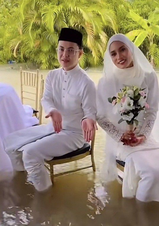 Viral pasangan asal Malaysia yang menikah di saat banjir melanda (tiktok.com)