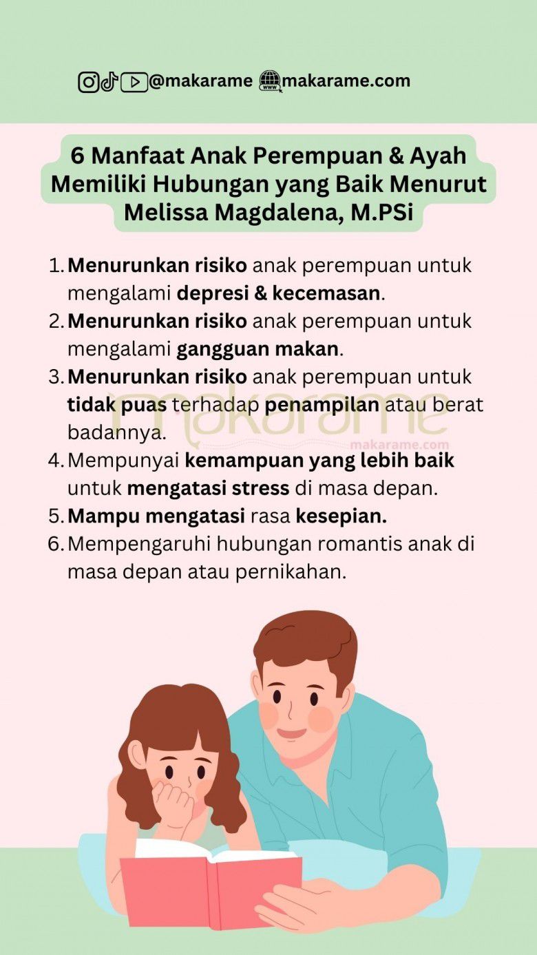 Anak yang dekat dengan ayah dapat terhindar dari risiko kenakalan remaja, penyalahgunaan narkoba, atau perilaku menyimpang lebih rendah.