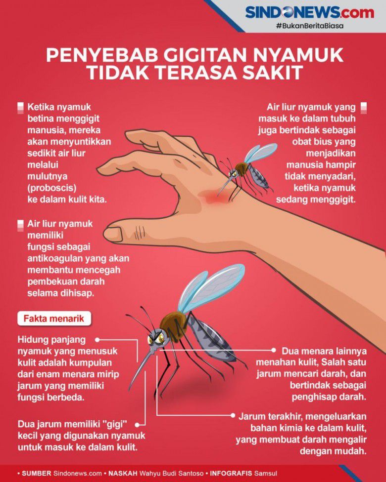 Penyebab gigitan nyamuk tidak terasa sakit (infografis.sindonews.com)