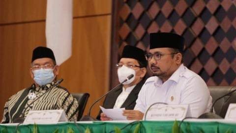 Menag Yaqut Cholil Qouman Melakukan Konferensi Pers Terkait Pembatalan Keberangkatan Haji 2021 (Kemenag)