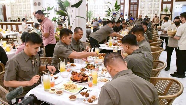 Ibu Iriana meminta seluruh personel pengamanan termasuk para pengawal kendaraan roda dua untuk makan bersama.