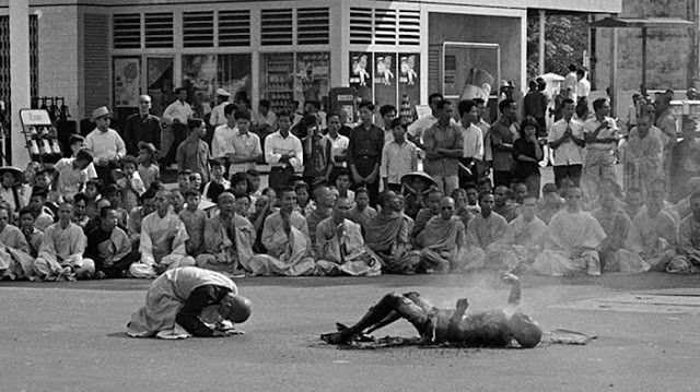 Tidak ada suara yang keluar, ketenangan yang diperlihatkan biksu Thich Quang Duc bertolak belakang dengan kegaduhan dan raungan sedih orang-orang yang ada di sekitarnya. Ritual yang dilakukan biksu Thich Quang Duc ini disebut dengan The Self Immolation (pengorbanan diri sendiri) sebagai sikap protes dan menuntut kesamaan hak bagi para penganut ajaran Buddha dengan rezim Diem.