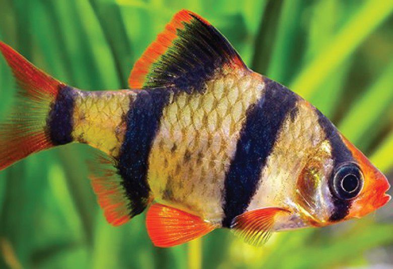 Ikan harimau Sumatera memiliki corak yang hampir sama seperti harimau dan berasal dari Pulau Sumatera. Ikan ini memiliki warna dasar orange (kekuningan) dengan corak hitam memanjang. Akan tetapi ikan ini sudah bisa jarang ditemui di habitatnya karenanya banyak para kolektor ikan hias yang memburu ikan ini.