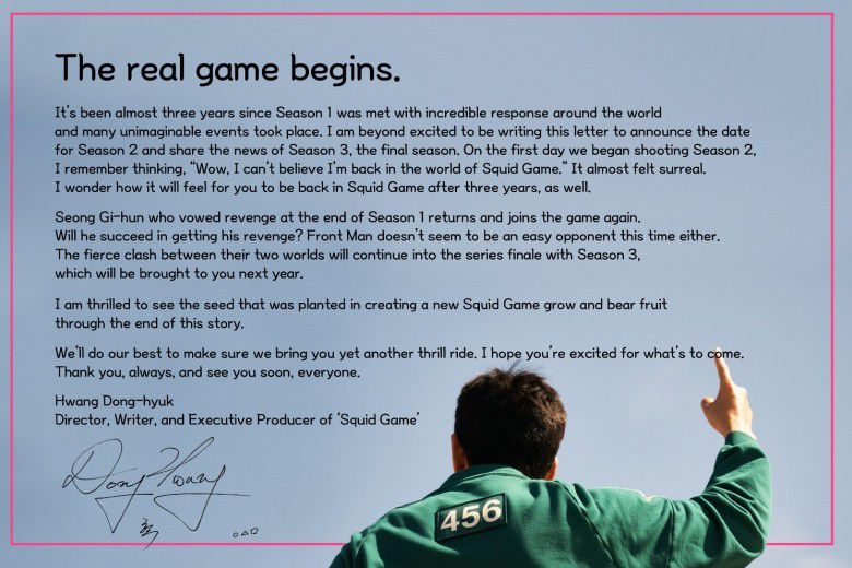 Surat dari Hwang Dong Hyuk soal jadwal tayang Squid Game Season 2 dan 3 (soompi.com)