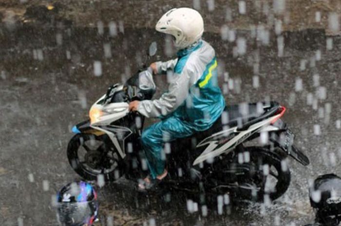 Jas hujan jaman sekarang sih pake bahan plastik ya, lebih awet (gridoto.com)