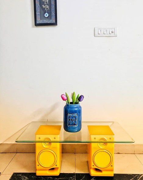 Daripada dibuang, kamu bisa manfaatkan bekas sound jadi karya inovatif dari barang bekas. Contohnya gambar ini yang dijadikan sebagai dudukan meja. Artistik sekali
