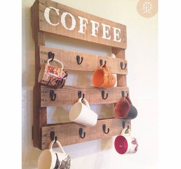 Ini juga merupakan contoh karya inovatif dari barang bekas yang bisa menginspirasi. Gantungan muk cuma dari bahan palet bekas doang gengs.