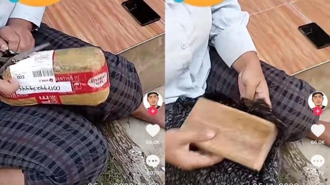 Viral wanita di TikTok seharusnya mendapatkan give away handphone, tapi hanya menerima paket berisi kayu (tiktok.com)