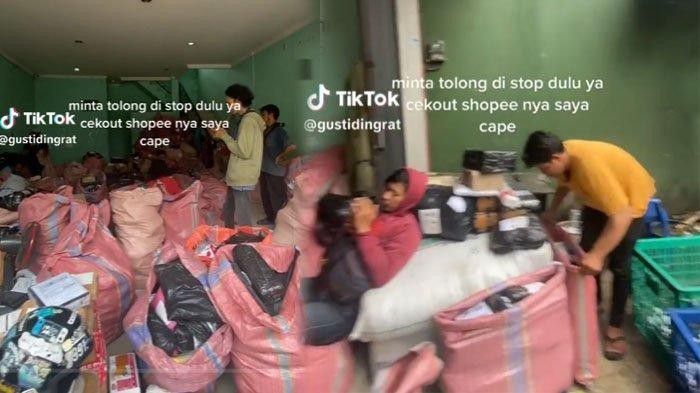 "Minta tolong disetop dulu ya check out Shopeenya saya capek," bunyi keterangan pada video tersebut, dikutip dari akun @gusti****, Senin (17/4/2023).