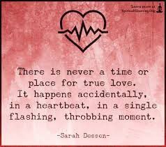 "There is never a time or place for true love. It happens accidentally, in a heartbeat, in a single flashing, throbbing moment." (Sarah Dessen)