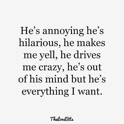 "He's annoying he's hilarious, he makes me yell, he drives me crazy, he's out of his mind but he's everything I want."
