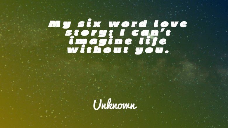 Artinya: Kisah cinta dalam 6 kata dariku: Aku tak pernah membayangkan hidup tanpamu.