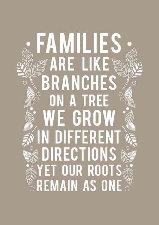 "Families are like branches on a tree, we grow in different directions yet our roots remain as one."
