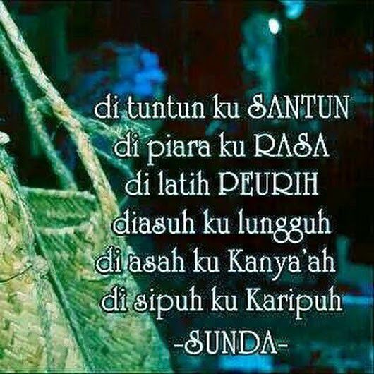 Dituntun ku santun. Dipiara ku rasa. Dilatih peurih. Diasuh lungguh. Diasah ku kanyaah. Disipuh ku karipuh.