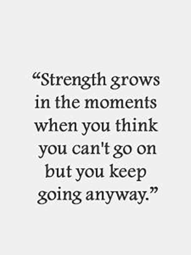 "Strength grows in the moments when you think you can't go on but you keep going anyway."