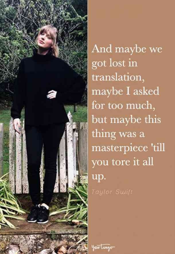 "And maybe we got lost in translation, maybe I asked for too much, but maybe this thing was a masterpiece 'till you tore it all up."