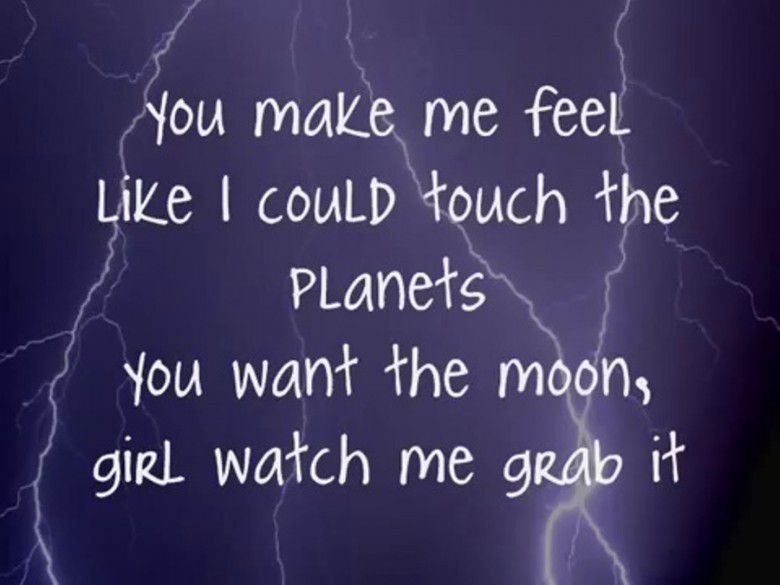 Artinya: Kau membuatku seakan mampu untuk menyentuh planet. Kau ingin bulan? Lihatlah aku mengambilkannya untukmu.