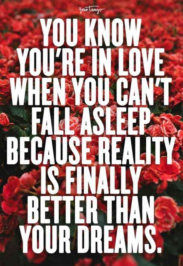 "You know you're in love when you can't fall asleep because reality is finally better than your dreams."