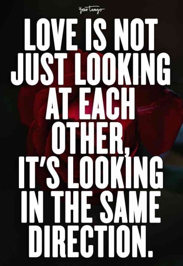 Artinya: Cinta bukan cuma saling pandang saja, namun juga memandang di tujuan yang sama.